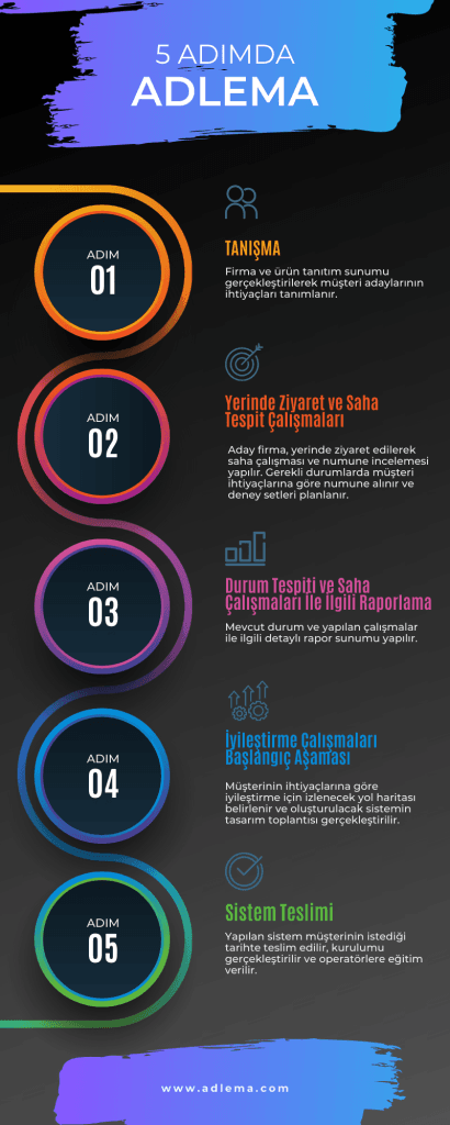Adlema, partnerlerinin sızdırmazlık konusundaki ihtiyaçlarına uçtan uca çözümler sunar. İhtiyacın belirlenmesi aşamasından cihazın teslim edilmesi aşamasına kadar tüm süreçte üretici kuruluşa yardımcı olur. Cihazın teslim aşamasından sonra ise kurulum, servis, eğitim ve kalibrasyon hizmetlerine devam etmektedir.